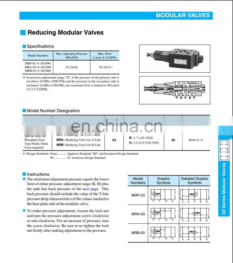Yuken MRP-03-C-10T Reducing Modular Valves MBP/MRP-01/03-H/C/B Series