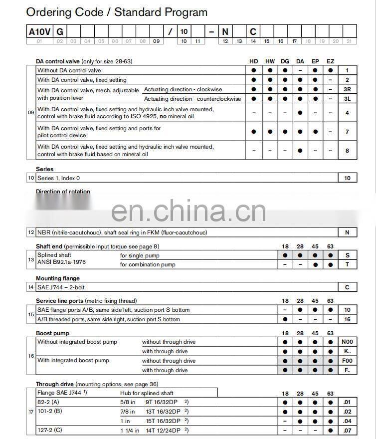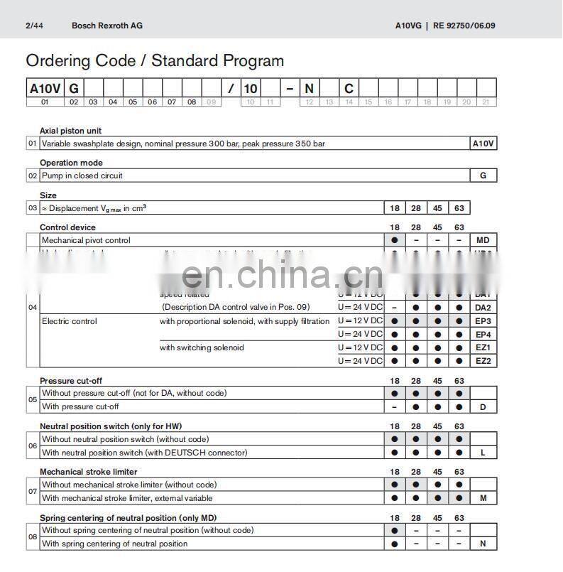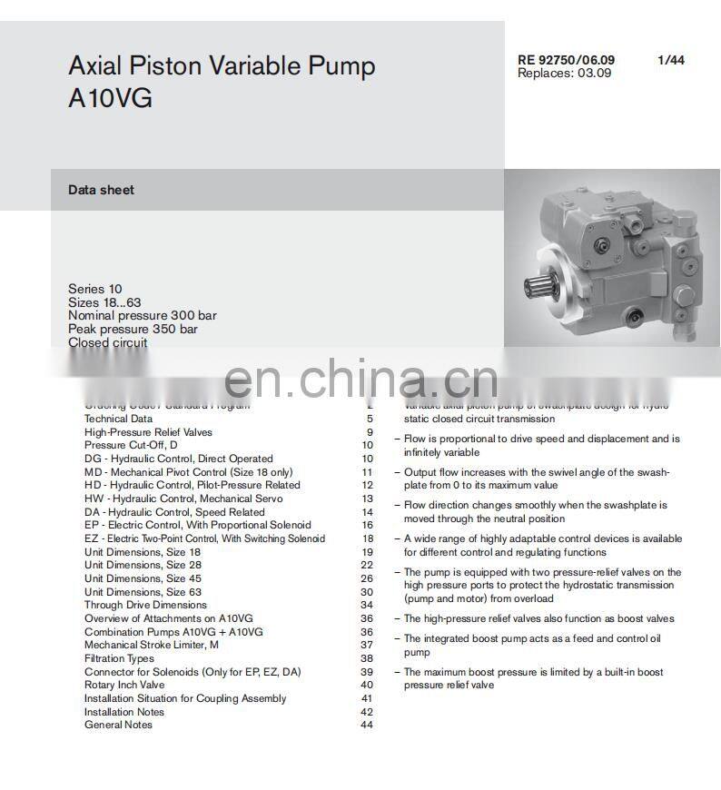 Rexroth A10VG Series A10VG18,A10VG45,A10VG63 Hydraulic Variable Piston Pump Rexroth A10VG28HWD1 A10VG28EZ21 A10VG28HWD1
