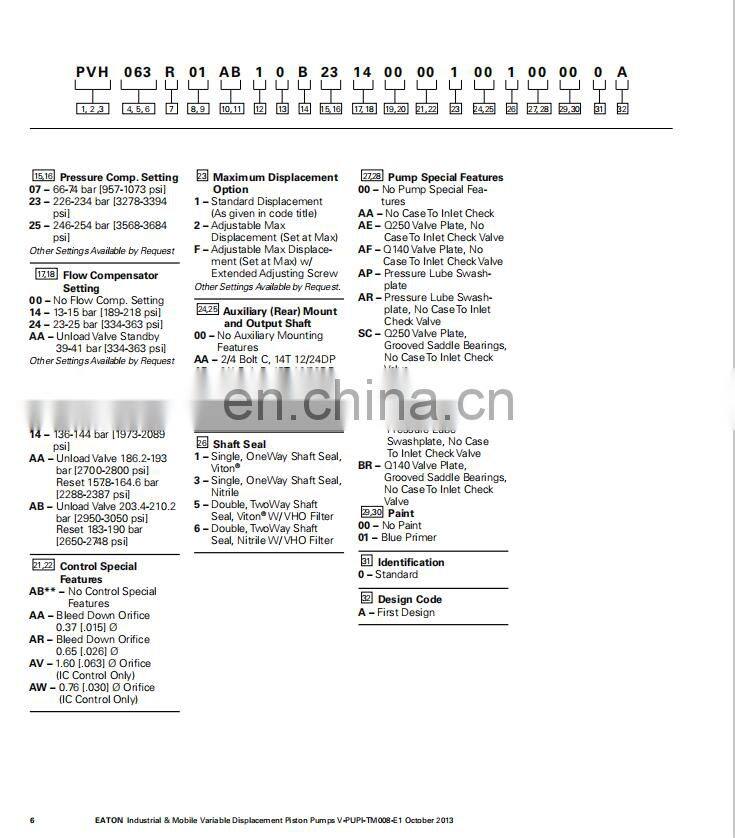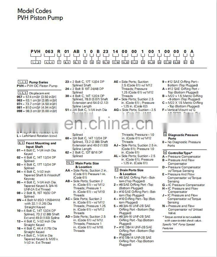 Eaton Vickers PVH098R PVH106R PVH131R PVH141R Series Variable Axial Piston Pump PVH098R01AJ30A250000002001AB0A0A