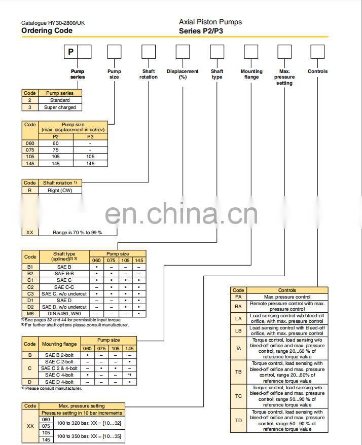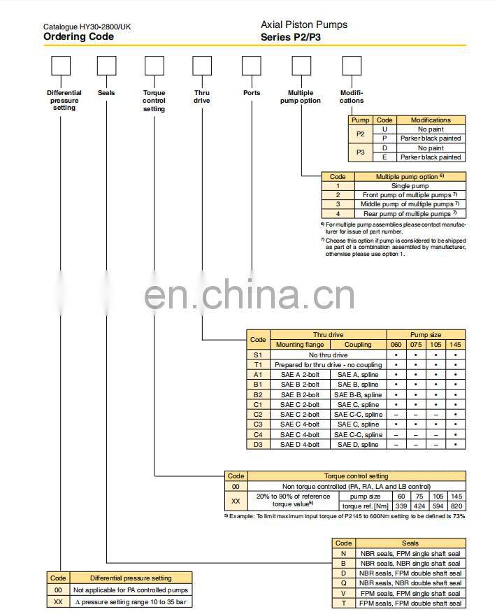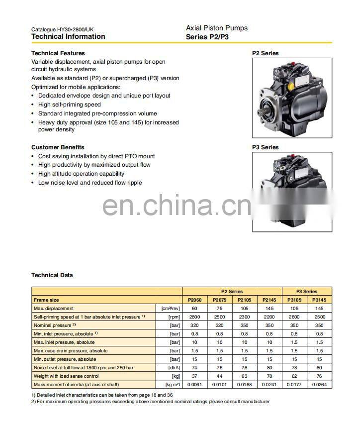 Parker P2060L P2075L P2105L P2145L P3075L P3105L P3145L hydraulic piston pumps P2075L00C1C32LA10N00B1B2P