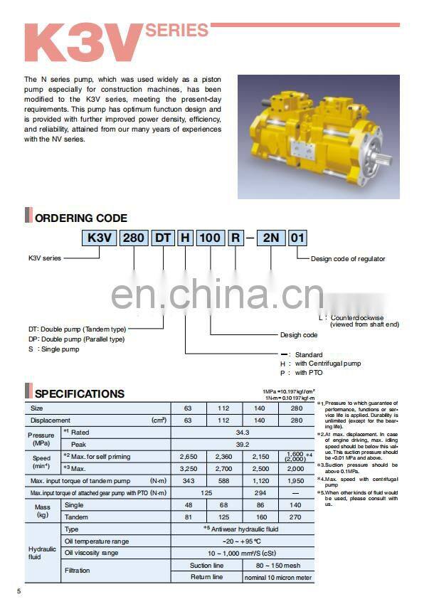 KPM K3V280 K3V280DTH Series Excavator Hydraulic Swash-plate Axial Piston Pump K3V280DTH1AHR-ZN39-VB