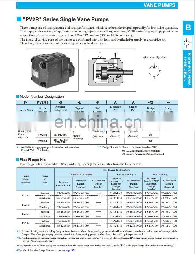 YUKEN PV2R2-41/47/53/59/65-F-RAA/LAA/A-41 Series Hydraulic Single vane Pumps PV2R2-41-F-1R