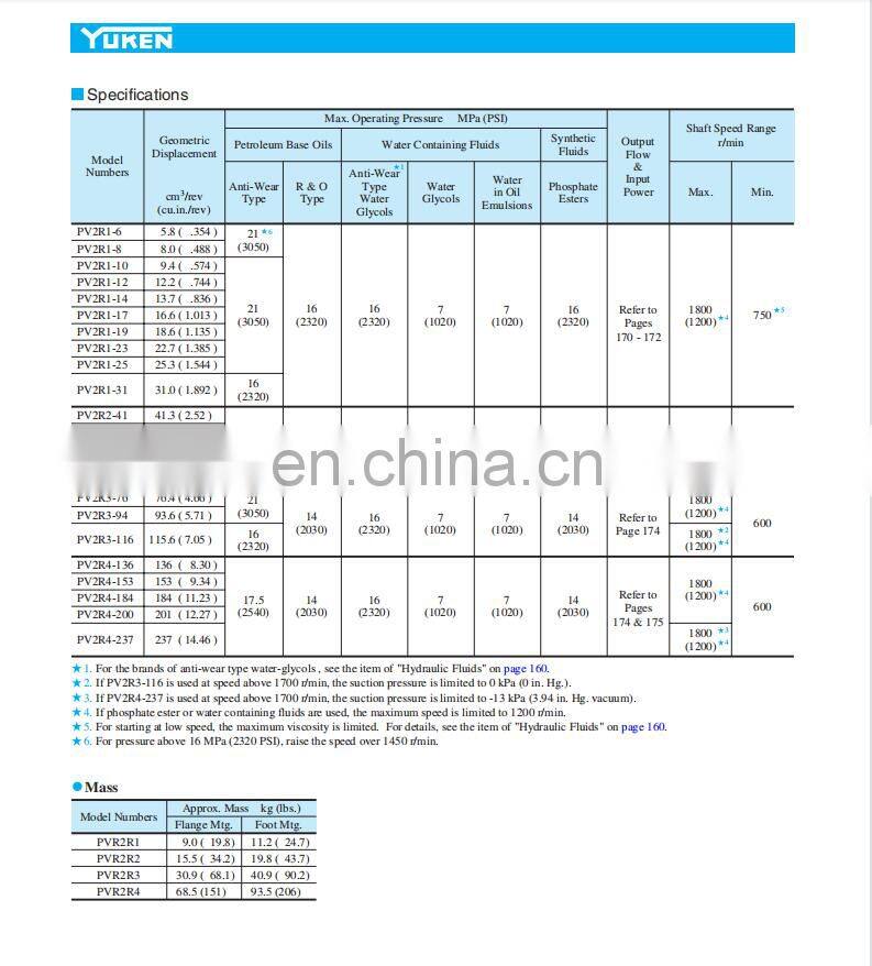 YUKEN PV2R1PV2R2 PV2R3 S-PV2R34-94-184-F-RFAR-3T68 S-PV2R34-94-136-F-RFAR-35 Hydraulic Oil Vane Pump