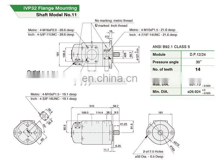Anson IPV IPV21 IPV31 IPV32 IPV41 IPV42 IPV43 Variable Double Vane Pump IVP32-35-21AM-F-R-86DC-11