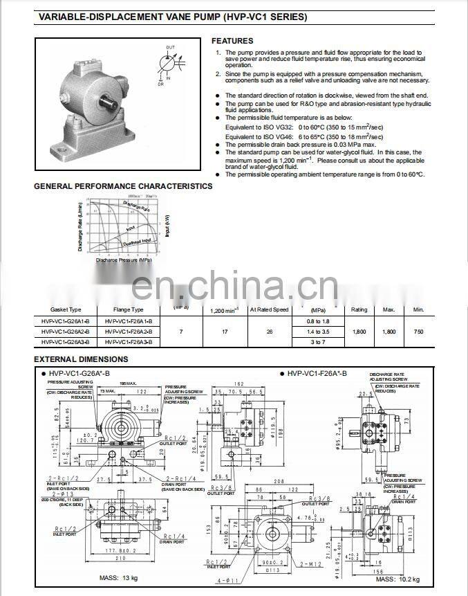 TOYOOKI HVP Series HVP-VC1 HVP-VD1 HVP-VG1 HVP-VB1 Variable Displacement Vane Pump HVP-VB1-F12A2-B