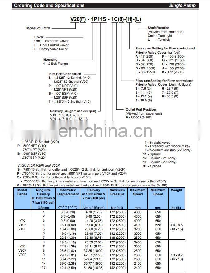 • Vickers V10P V20P V10F V20F V20-1B11B/1B12B/1B13B/1B5B/1B6B/1B7B/1B8B/1B9BF Series Hydraulic Vane Pump V20 1B6B 1B 11
