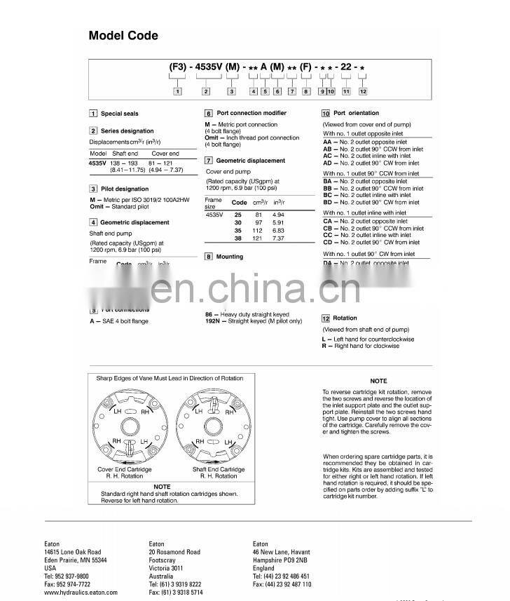 Vickers 4535V-60A25/60A30/60A35/60A38 series hydraulic double vane pump pump 4535V-60A32-86CC22R