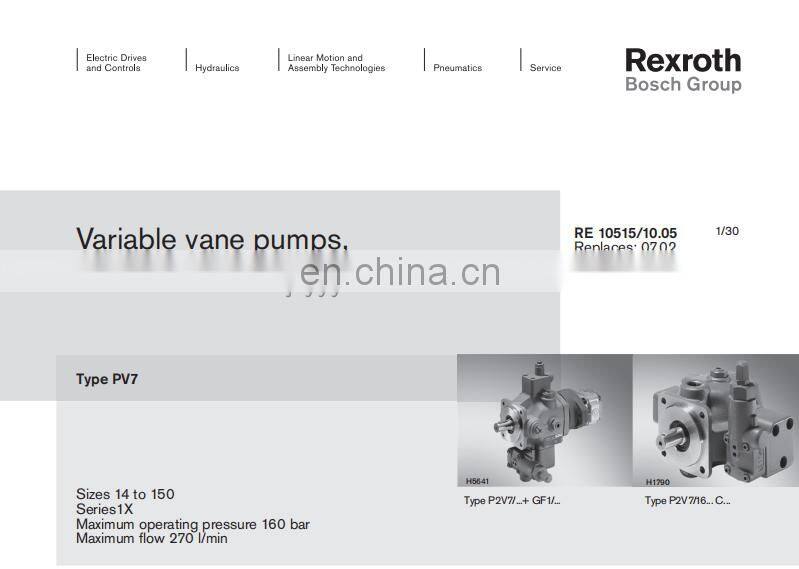 REXROTH PV7-1A/16-20RE01MC0-16 PV7-1X/16-30RE01MC0-08 PV7-1A/25-45RE01MC0-08 Variable Vane Pumps, Pilot Operated