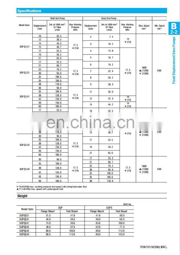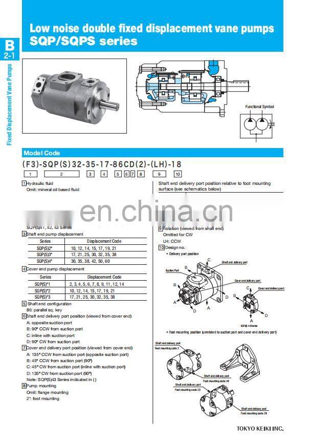 TOKYO Keiki SQP432-60-35-17-86DCB-18 Double Fixed Displacement Vane Pumps SQP211/SQP311/SQP321/SQP421/SQP431/SQP432