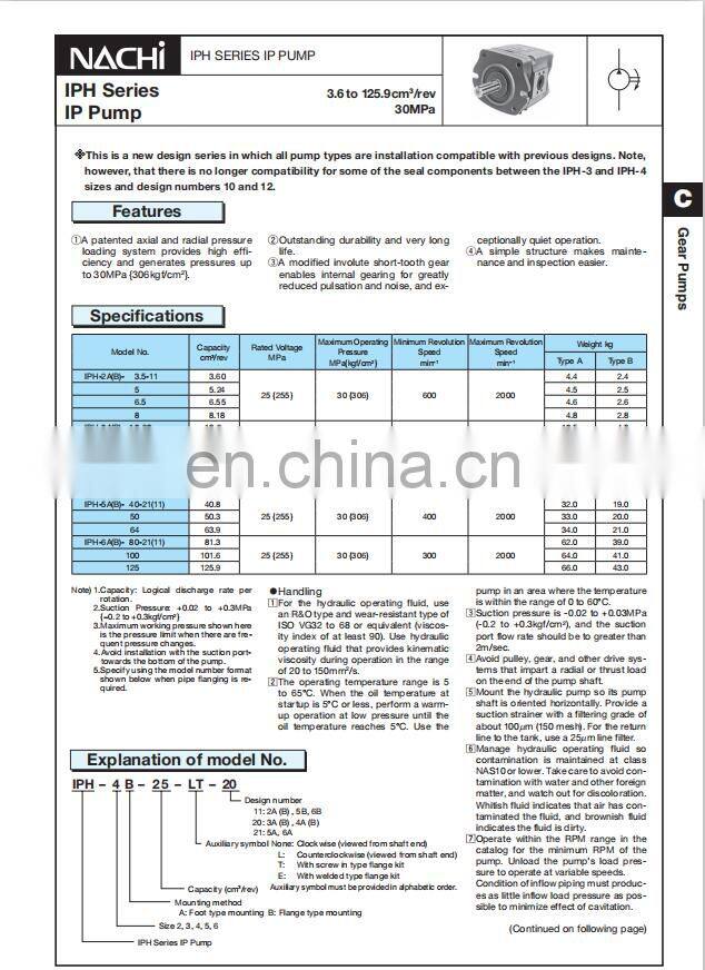 Nachi IPH-2A IPH-3A IPH-4A IPH-5A IPH-6A IPH-2B IPH-3B IPH-4B IPH-5B IPH-6B Series Hydraulic Gear Oil Pump IPH-5A-64-T-21