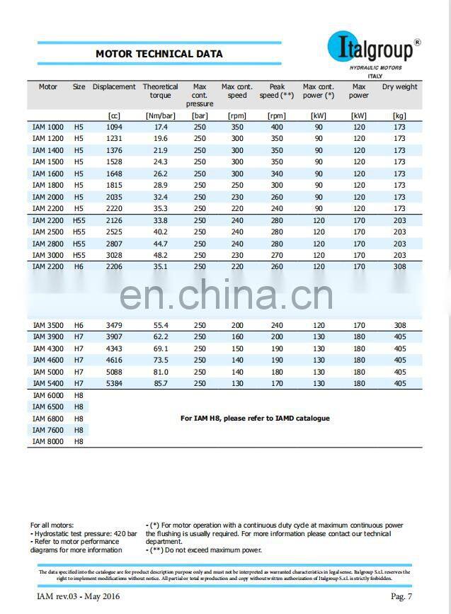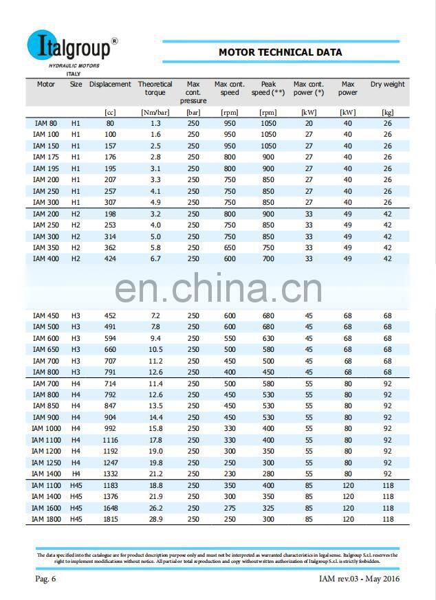 IAM1100 IAM1200 IAM1250 IAM1400 IAM1500 IAM1600 IAM1800 IAM2000 IAM Italgroup Intermot Hydraulic Motor