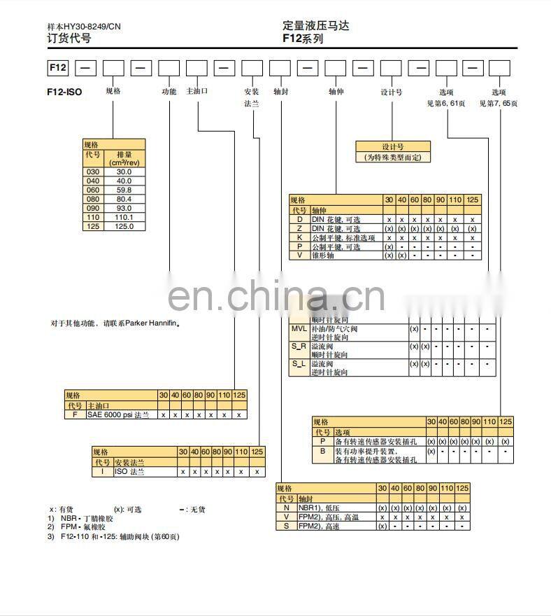 Parker F12-110-MS-SV-S-000-0000-P0 Hydraulic Motor F12-030/040/060/080/090/110/125-RS/MF/MS-CV/IV/SV/IH/SH/TH-D/K/S/T Series