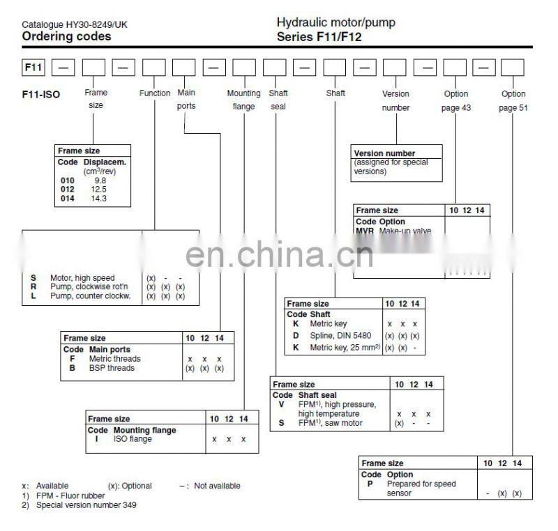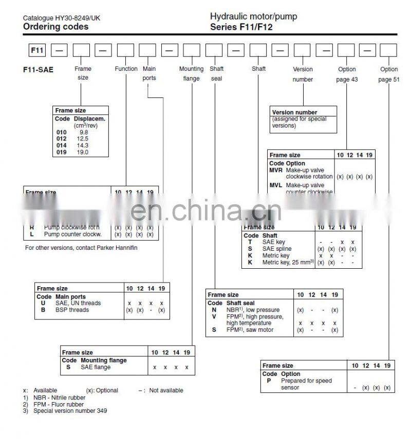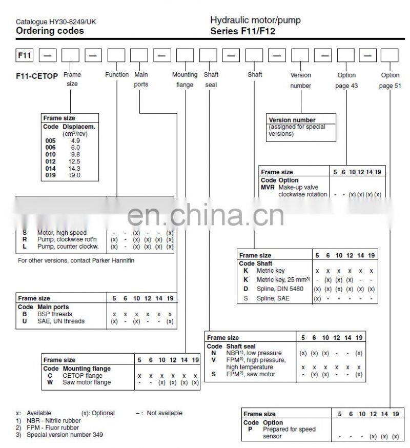 Parker F11-005-MB-CV-K-209-000 Series Hydraulic Piston Motor F11-005/010/014/019/150/250-MB/HU/HB/MF/HF/QF-CN/CH/CE/CV/SH-K/S/F