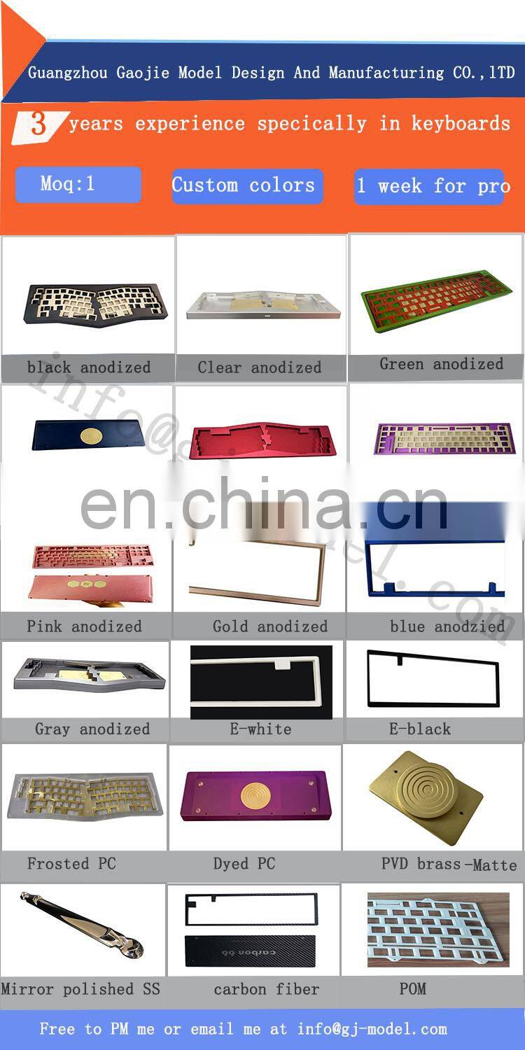 CNC Mechanical Keyboard pc Acrylic Aluminum Keyboard Case Prototype FrostedAnodise/Sandbasting/PVD/Polish/E-white Service