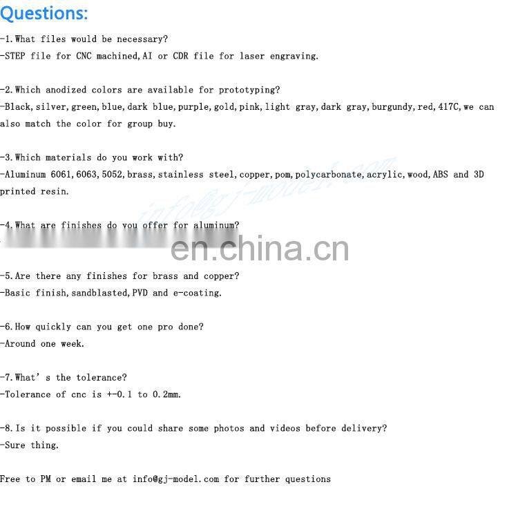 Raw material | Plastic(ABS,PC,PP,PA,PMMA, PA+GF, teflon etc) and metal( Alu,SS,brass and copper) | ||||||