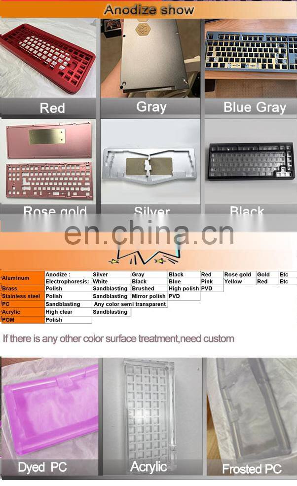 Black Blue Gray Orange Red Rose Gold Pink Anodize 60% 75 % TKL Mechanical CNC Machining Manufacturer of Keyboard