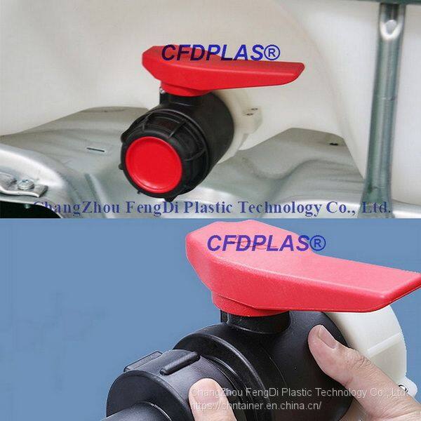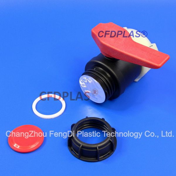 Original CFDPLAS Brand of IBC tanks Ball valve,red handle,Nylon Screw Nut (or Alu screw) of S75x6 > S60X6 EPDM/FKM flange gasket.