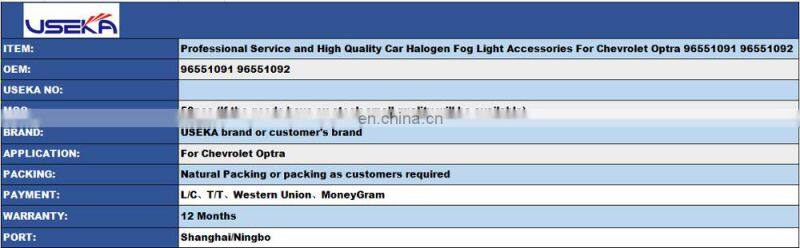 Professional Service and High Quality Car Halogen Fog Light Accessories For Chevrolet Optra 96551091 96551092