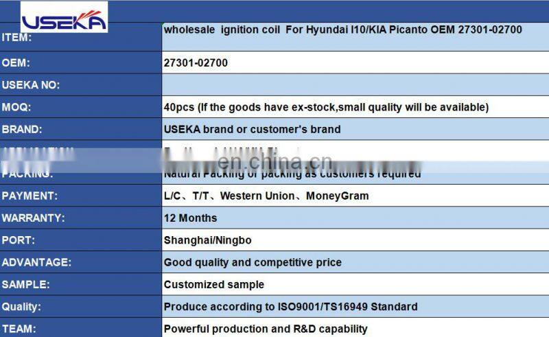 Home > Products > For Hyundai parts > Wholesale Ignition Coil For Hyundai I10/KIA Picanto OEM 27301-02700