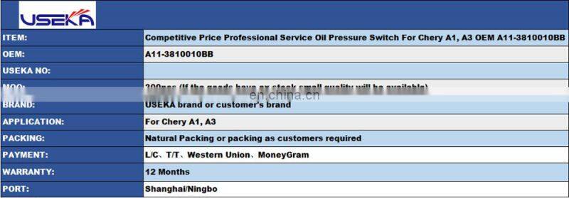 Competitive Price Professional Service Oil Pressure Switch For Chery A1, A3 OEM A11-3810010BB