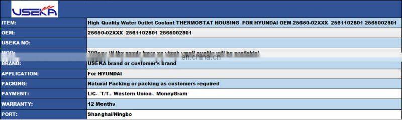 Home > Products > For Hyundai parts > High Quality Water Outlet Coolant THERMOSTAT HOUSING FOR HYUNDAI OEM 25650-02XXX 2561102801 2565002801
