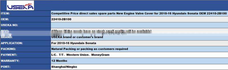 Competitive Price direct sales spare parts New Engine Valve Cover for 2010-16 Hyundais Sonata OEM 22410-2B100