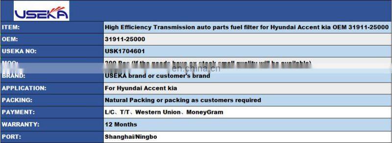 Home > Products > For Hyundai parts > High Efficiency Transmission Auto Parts Fuel Filter for Hyundai Accent Kia OEM 31911-25000