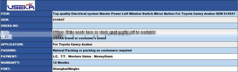 Home > Products > For Toyota parts > Top Quality Electrical System Master Power Left Window Switch Mirror Button For Toyota Camry Avalon OEM 514547