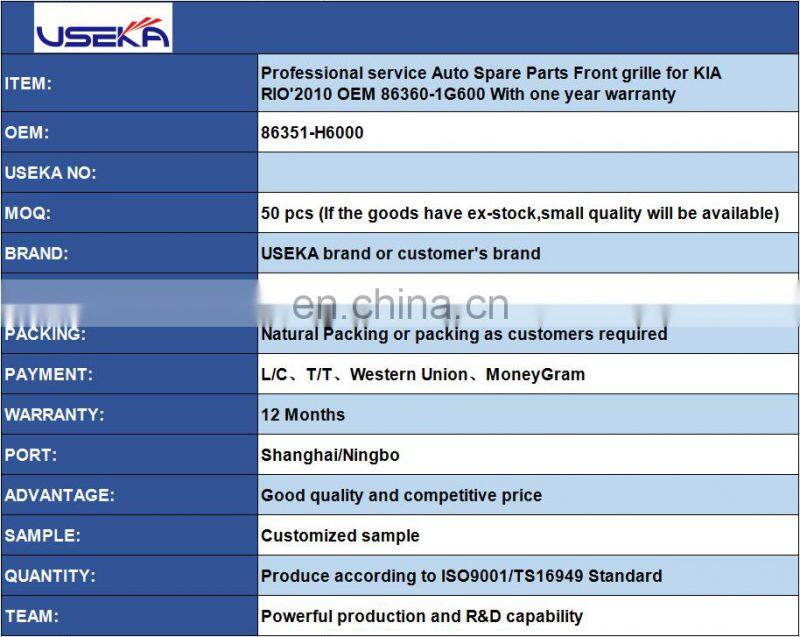 Home > Products > For Kia parts > Professional Service Auto Spare Parts Front Grille for KIA RIO'2010 OEM 86360-1G600 With One Year Warranty