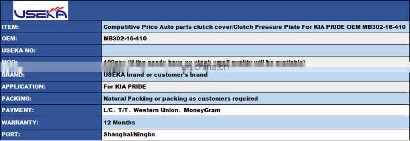 Competitive Price Auto Parts Clutch Cover/Clutch Pressure Plate For KIA PRIDE OEM MB302-16-410