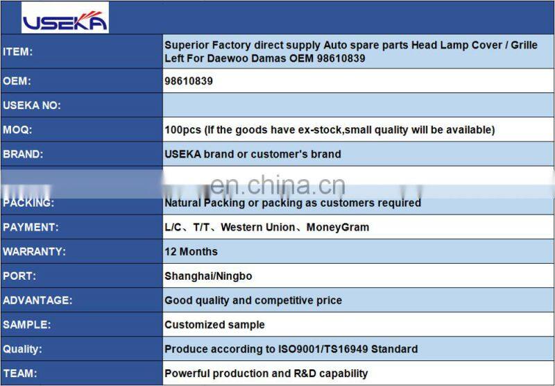Superior Factory direct supply Auto spare parts Head Lamp Cover / Grille Left For Daewoo Damas OEM 98610839