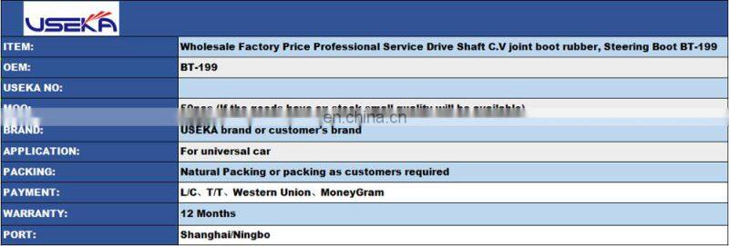 Wholesale Factory Price Professional Service Drive Shaft C.V joint boot rubber, Steering Boot BT-199