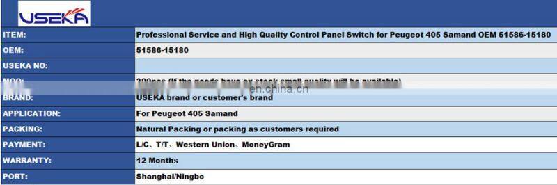 Home > Products > Ungrouped > Professional Service and High Quality Control Panel Switch for Peugeot 405 Samand OEM 51586-15180