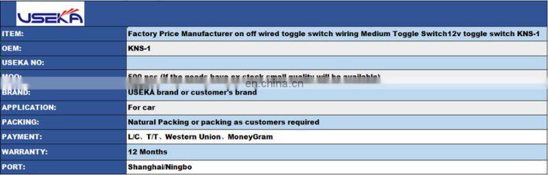Factory Price Manufacturer on off Wired Toggle Switch Wiring Medium Toggle Switch12v Toggle Switch KNS-1