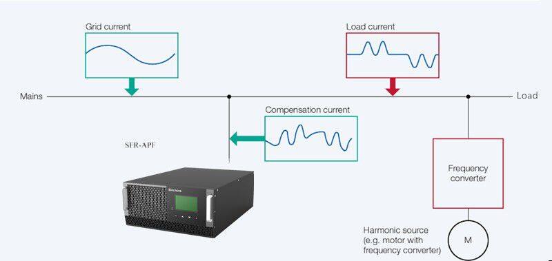 An increasing number of loads are non-linear, introducing harmonics into the power grid and thus significantly impairing the power quality. SFR-APF is an active harmonic filter that effectively reduces the unwanted harmonics.