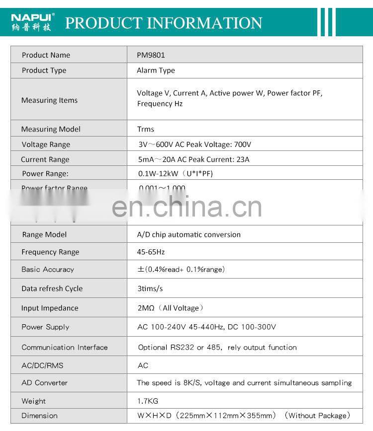 NAPUI Brand Alarm Type Electric Parameter Tester