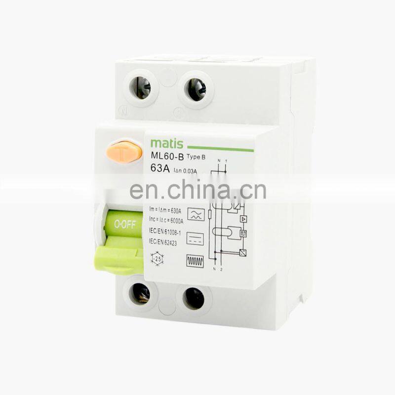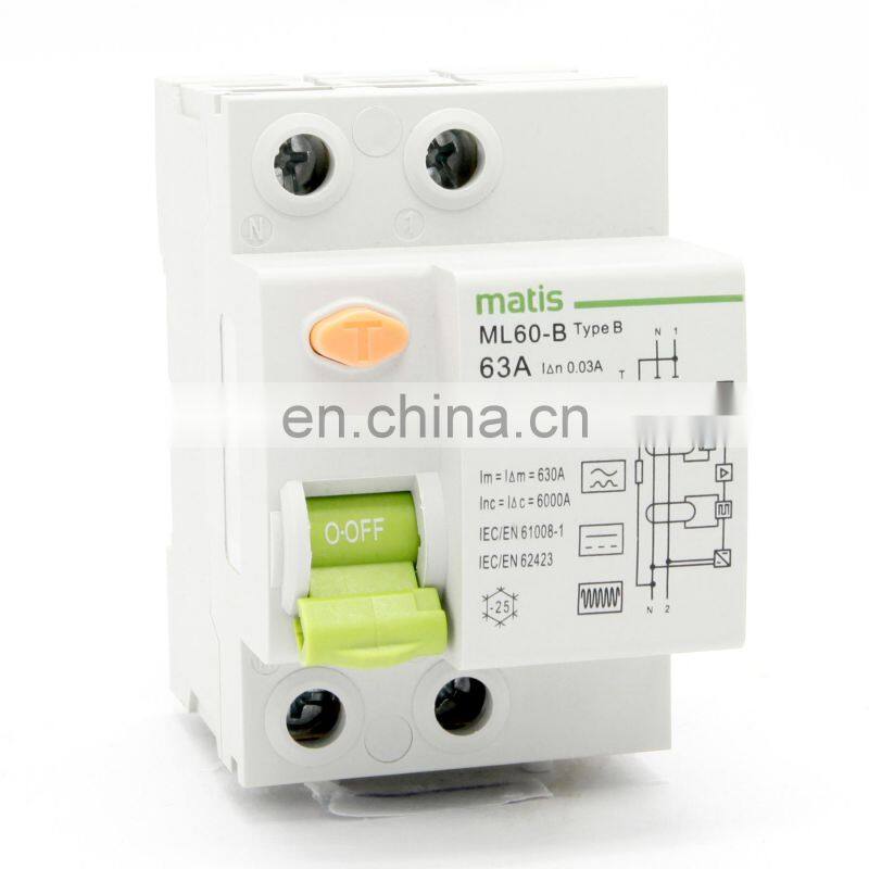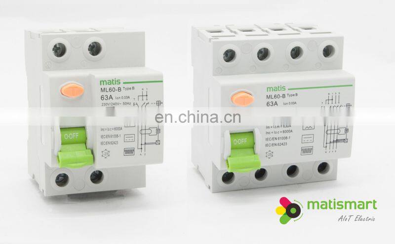 Hot Selling Dependable Performance Matismart Type B Circuit Breaker Rccb Rcbo Mccb 2p 30ma 63a Device ML60B