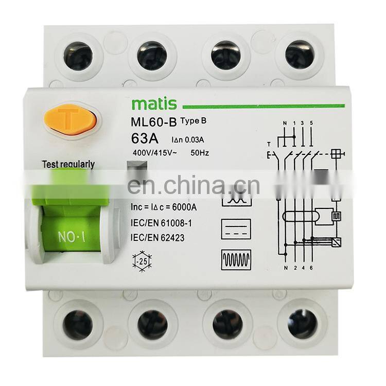 High Quality RCD Type B Single Pole 30ma Type B 4p Earth Leakage Circuit Breaker Residual Current Device Breaker