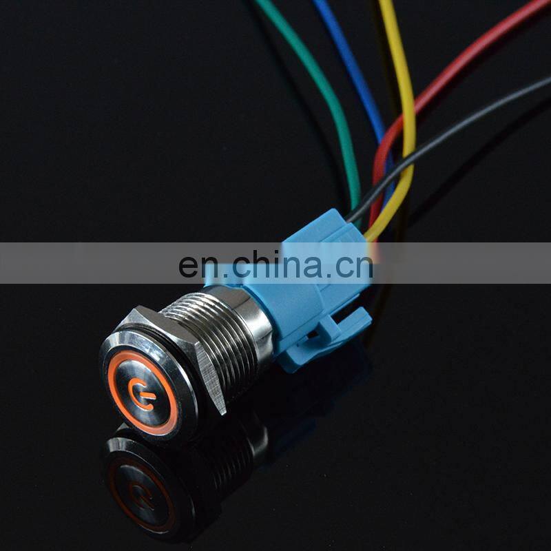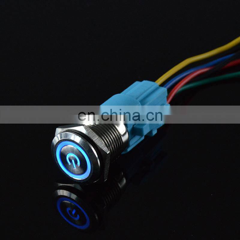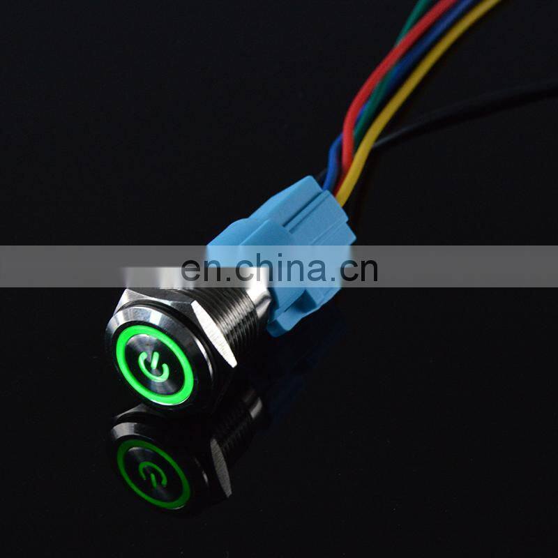 22mm Waterproof Metal Push Button Switch Self Latching Self Momentary Annular Power Symbol With Lamp