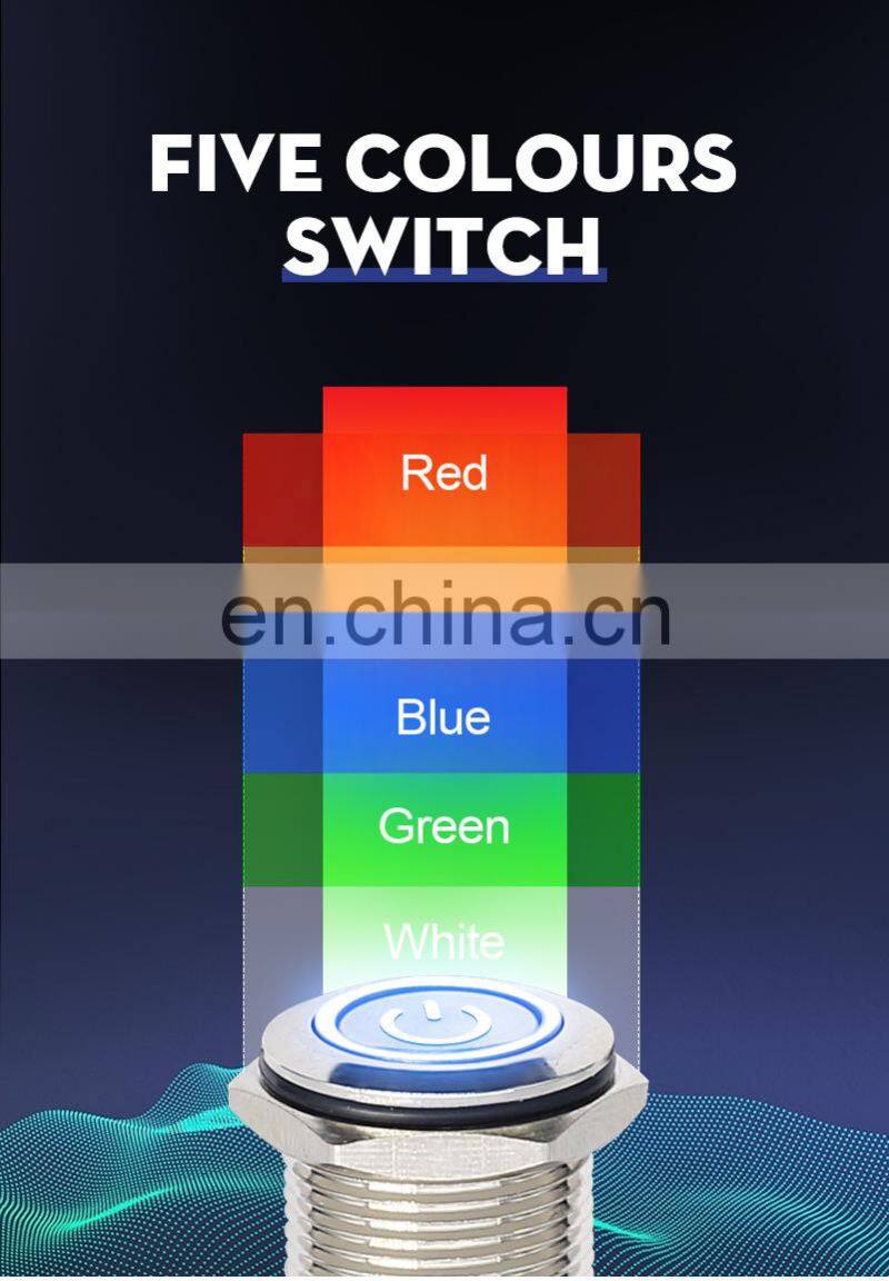 12mm LED Light Metal Push Button Switch 5 Colors 4 Pin Annular Car Power Signal Power Button Switch 3V 6V 12V 24V 220V