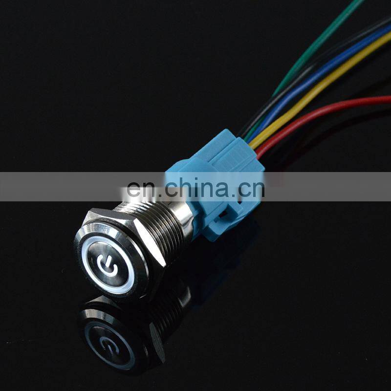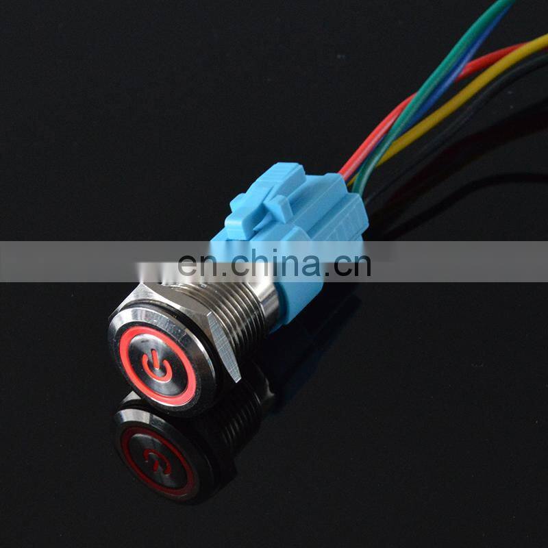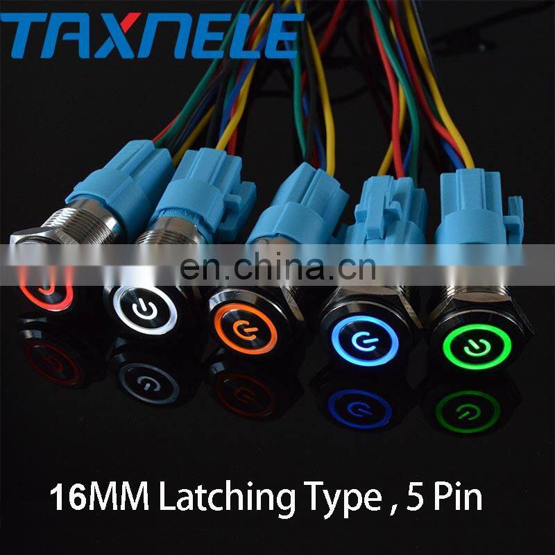 22mm 12v 24v Waterproof Metal Push Button Electrical Switch Latching Momentary Annular Power Symbol With LampLed Indicator
