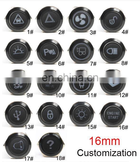 16mm Metal Self Reset Push Button Switch High Ball Flat Head 5 Color Waterproof Screw Contacts Car Auto Engine Switch
