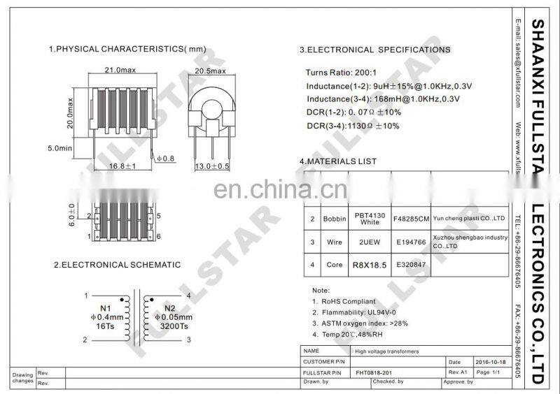 A : Fullstar has been mamufacturing customized High Voltage Ignition Transformer for more than 24 years.