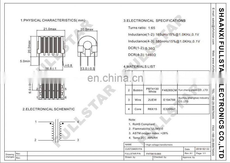 High Voltage Transformer FHT19 Resin Encapsulated Ignition Transformer for Ozone