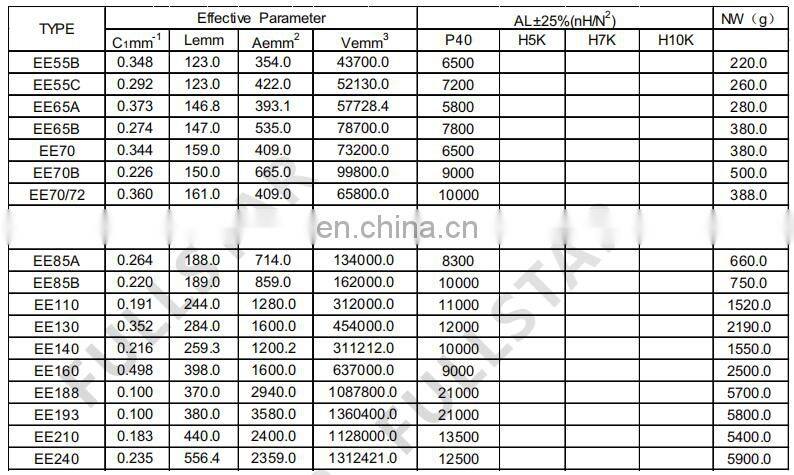 Available materials | Mn-Zn power ferrite and P40/P20//H5K/H7K/H10K/H12K/H15K |