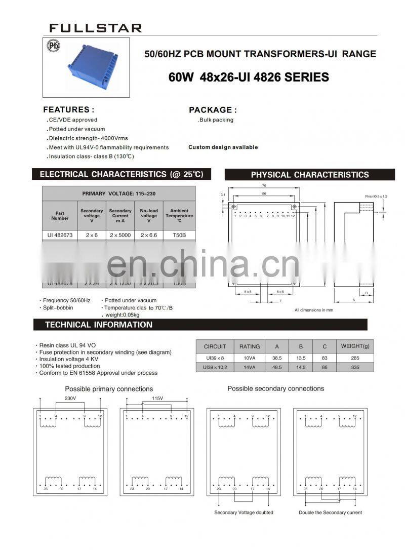50HZ 60HZ Encapsulated Power Transformer PCB Mount Transformer 60W