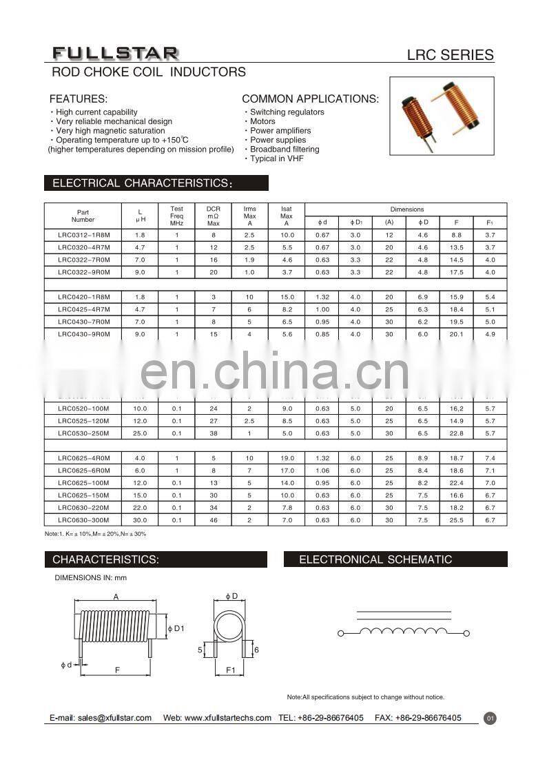 Product name | LRC series ferrite rod core choke coil magnetic coil inductor | ||||