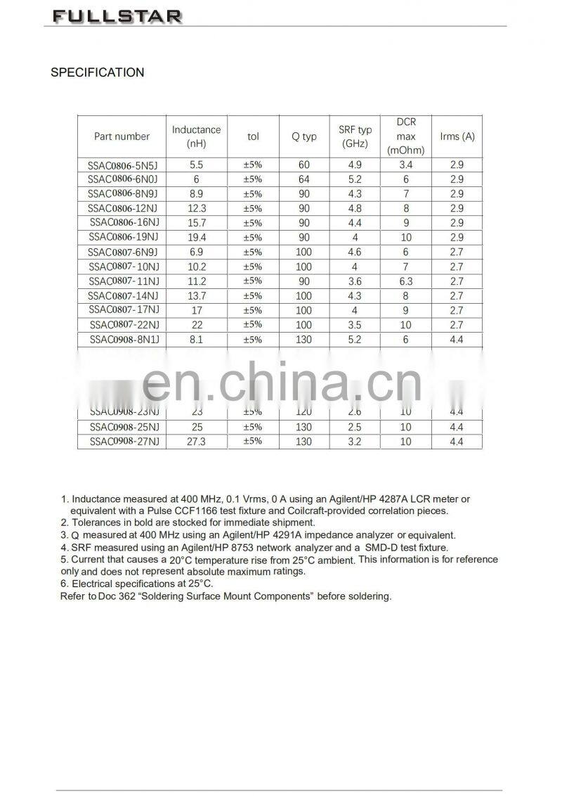 Fullstar produces several kinds of air core surface mount coils, compliant with RoHS (Reach). high Q value and stable inductance, and has high self-resonant frequency. Meanwhile, the low DC resistance design is ideal for low power consumption, low loss, high output.