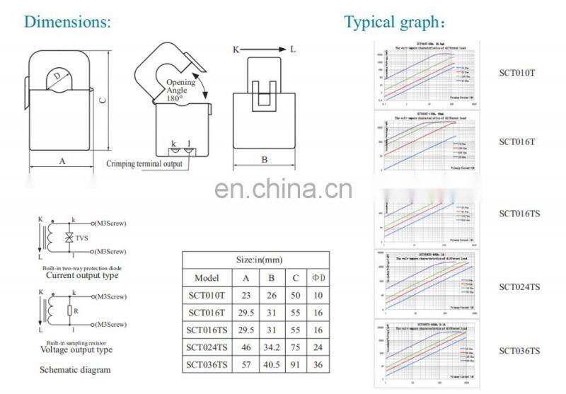 SCT036TS | 600A | 650A | 6000±2T | 0.5/1 | 100mA | 5Ω | 50-60Hz | 286Ω±30Ω | 310 |