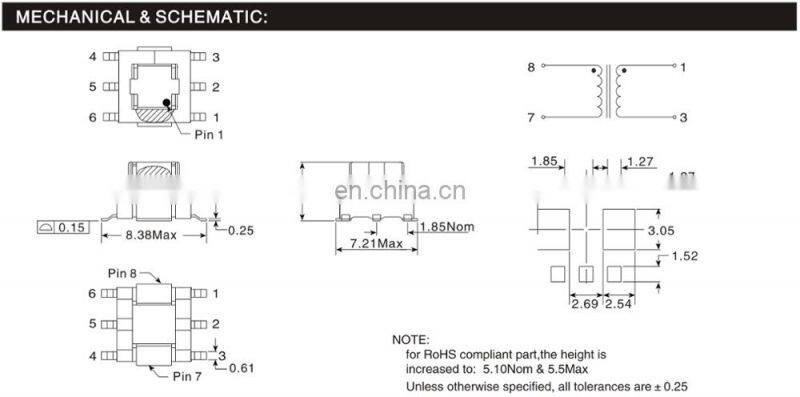 | Part Number | Turns ratio | Current² Rating(A) | Secondary inductance (mH)Min | DCR(mΩ Max) | Hi-Pot(Vrms) | |